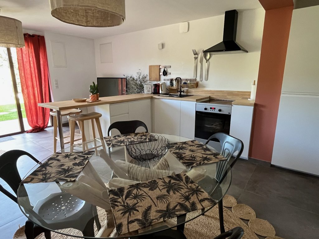 La cuisine entièrement équipée vous permettra de préparer vos repas en toute simplicité. Vous y trouverez notamment une machine à café Nespresso, et tout le nécessaire pour un séjour sans contraintes. Pour votre confort, le gîte est également équipé d’une TV, du WIFI, et de produits de premières nécessités ainsi que d’articles de toilette.